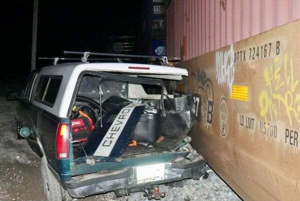 PSLPD: Train Crashes Into Truck that was Stuck on Railroad